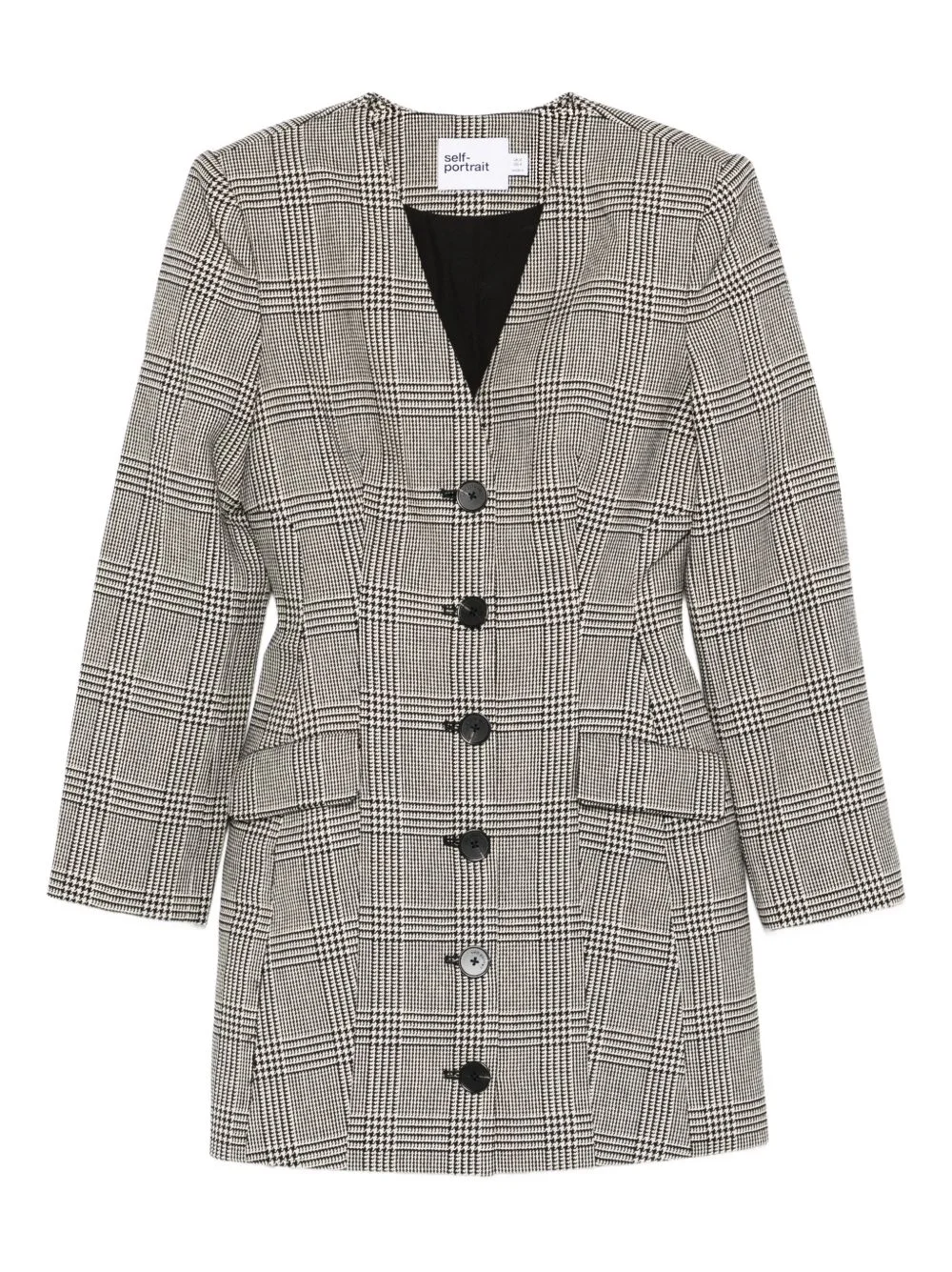check button mini dress Highlights - Black and white - Check pattern - Button fastening - V-neck - Long sleeves - Front pockets Imported Composition Outer: Wool 79%, Polyester 21% Lining: Polyester 100% SIZE & FIT Model measurements Height 5 ft 11 in(1.8 m) Bust/Chest 32.28 in(82 cm) Hips 35.82 in(91 cm) Waist 25.19 in(64 cm) Washing instructions Dry Clean Only