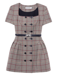 checked short sleeve mini dress Highlights - Brown - Short sleeves - Check pattern Imported Composition Outer: Wool 62%, Polyester 39% Washing instructions Dry Clean Only