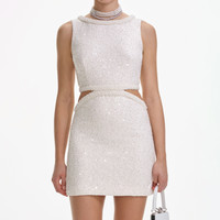 Cream Boucle Pearl Mini Dress