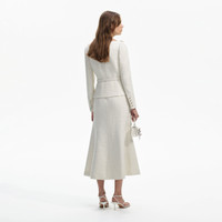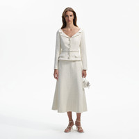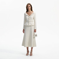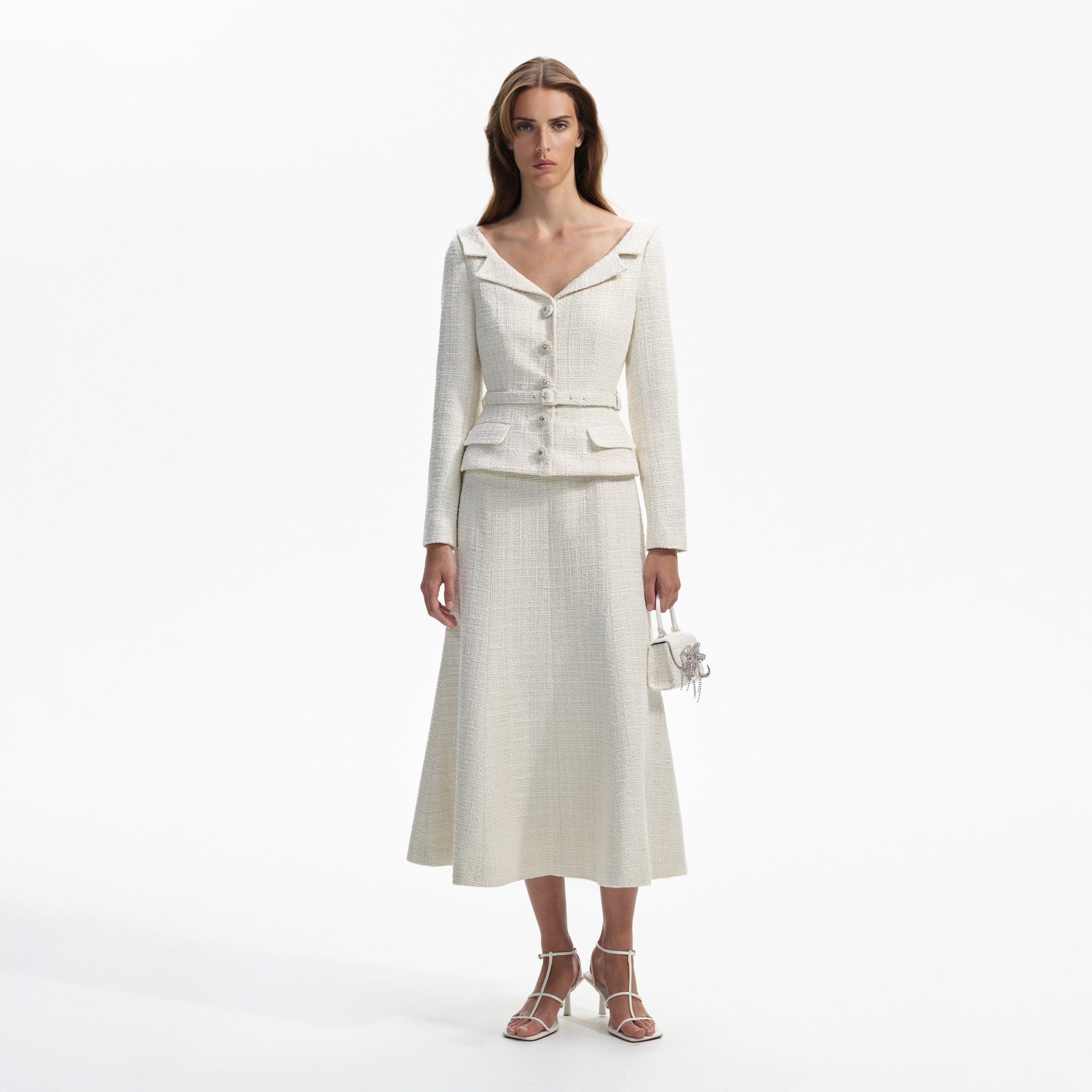 Cream Boucle Tailored Off Shoulder Midi Dress