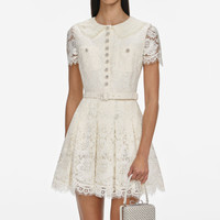 Details & Fit Signal elegant charm in this floral lace mini dress. Accented with diamante buttons and trims, a belted waist and collar detail add a touch of preppy chic. Style with heels for the next soiree. Signal elegant charm in this floral lace mini dress. Accented with diamante buttons and trims, a belted waist and collar detail add a touch of preppy chic. Style with heels for the next soiree. - Fitted style, take one size up if between sizes - This style has minimal stretch - Concealed zip closure at back - Fully lined - Removable belt - Model is 5ft10/178cm and wears a size UK 6 - Fitted style, take one size up if between sizes - This style has minimal stretch - Concealed zip closure at back - Fully lined - Removable belt - Model is 5ft10/178cm and wears a size UK 6 COMPOSITION 48.5% Nylon 28.2% Cotton 23.3% Rayon 48.5% Nylon 28.2% Cotton 23.3% Rayon