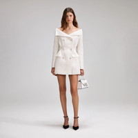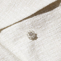 A wash in cream metallic bouclé for its satisfying structure and photo-ready sheen, this mini dress is sharp yet uber elegant. Its lapel-framed neckline and double breasted design nod to menswear tailoring, while a cinched waist and short hemline flatter the feminine form. Pair it with kitten heels and a veil for a tasteful civil ceremony look. Check the Size Guide to find your perfect fit. COMPOSITION Main Fabric: 99%Polyester 1%Metallised Fibre Lining: 100% Polyester