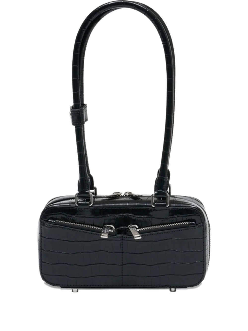 crocodile-embossed leather shoulder bag Highlights - Black - Crocodile embossed leather - Zip pockets - Zip fastening - Silver-tone hardware Imported Composition Outer: Calf Leather 100% Lining: Polyurethane 100%