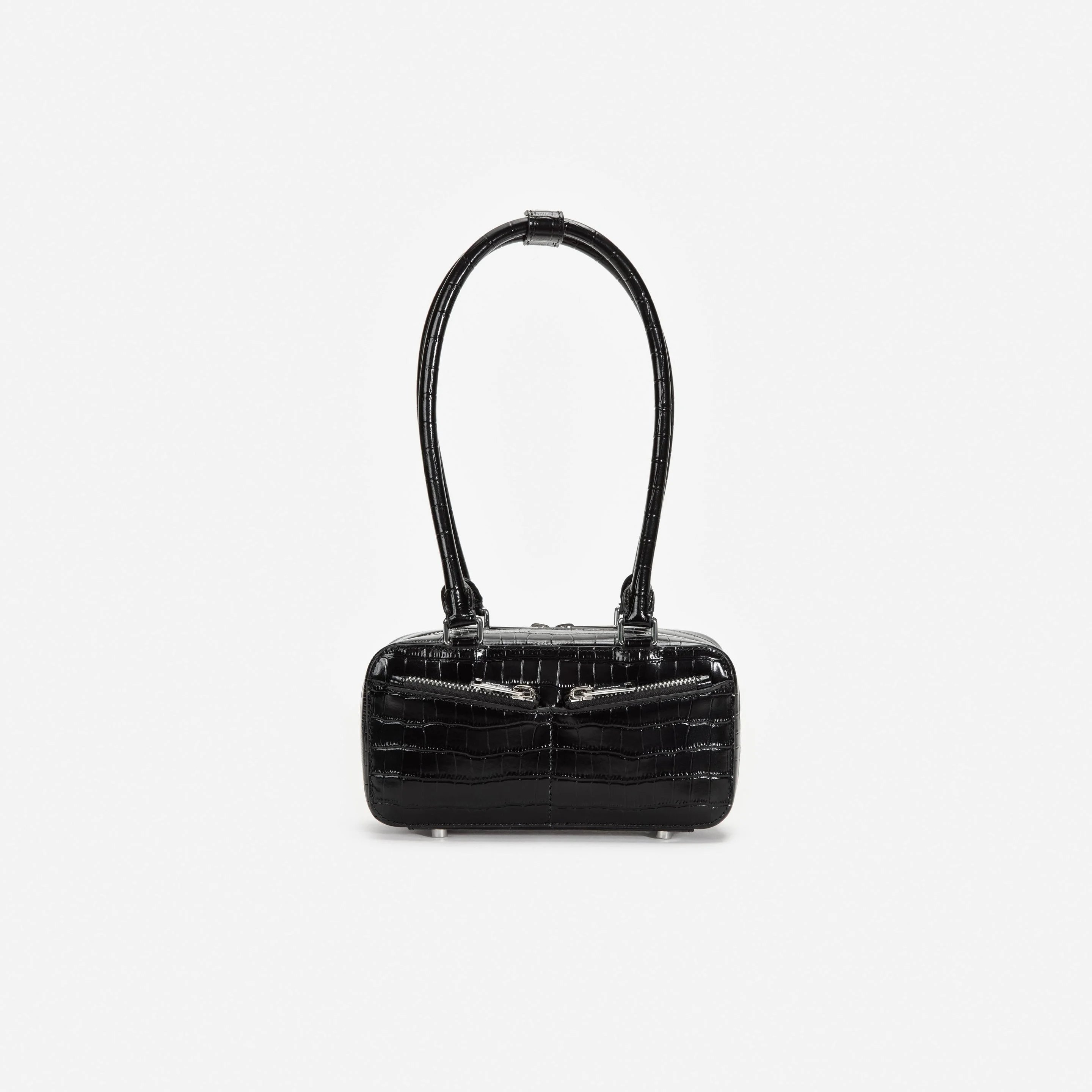 Details & Fit Handle with flair: this black mini shoulder bag unites a street-ready silhouette with a mock croc finish. Functional pockets are designed to hold all essentials – perfect for toting around town. Composition Outer 100% Cow Leather Lining 100% Pu Synthetic Leather