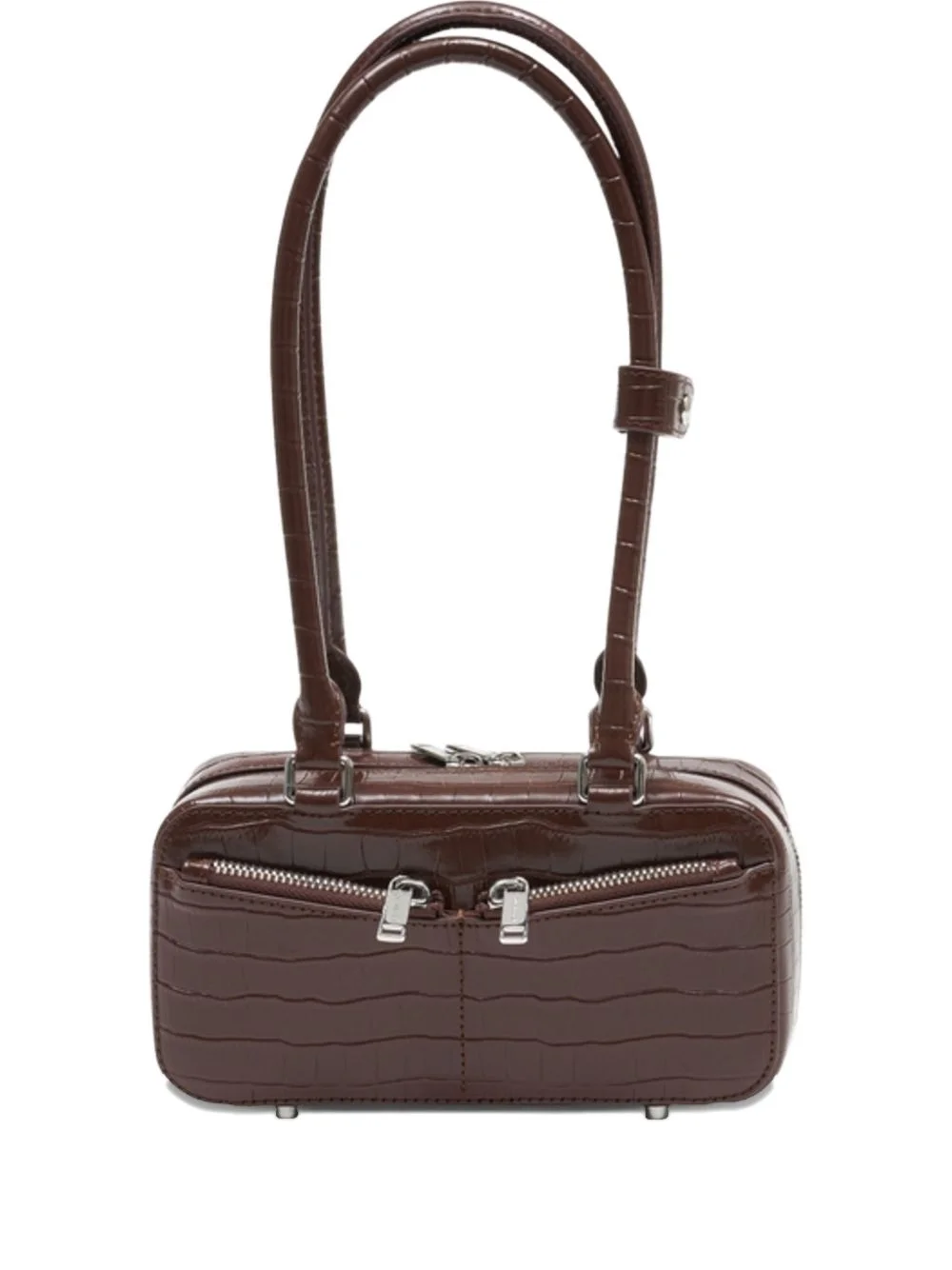 crocodile-embossed leather shoulder bag Highlights - Brown - Crocodile embossed leather - Zip fastening - Zip pockets - Silver-tone hardware Imported Composition Outer: Calf Leather 100% Lining: Polyurethane 100%