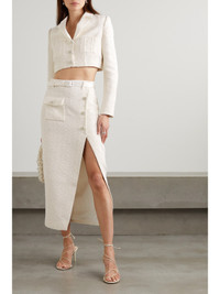 Cropped Embellished Satin-trimmed Metallic Bouclé-tweed Blazer