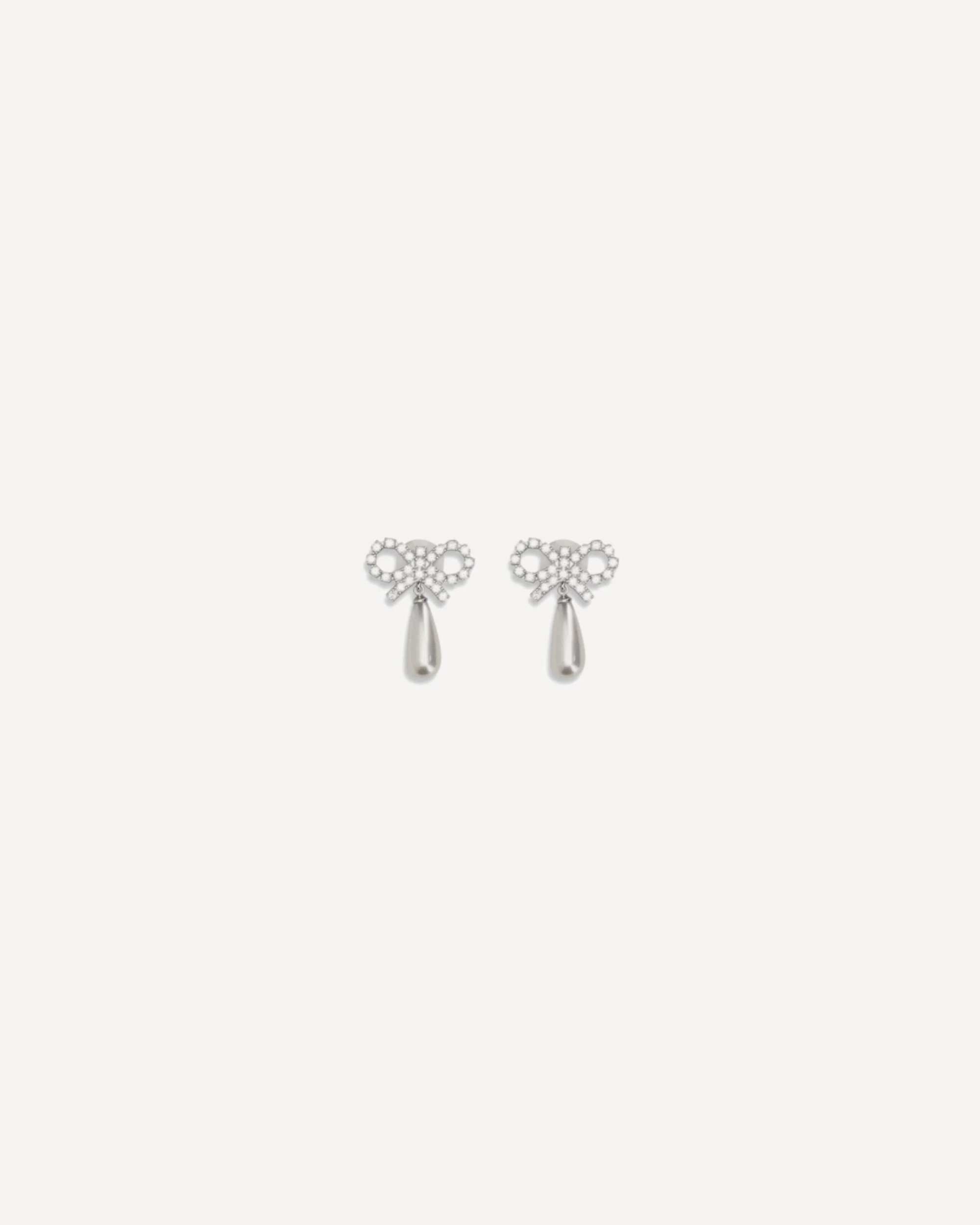The crystal bow pearl Earrings by Self-Portrait combine elegance and luminosity with refined pearl drops paired with sparkling crystal bows. Equipped with a stud holder, they frame the face with a delicate, sparkling effect, perfect for enhancing both everyday looks and more sophisticated outfits. DETAILS - Sku: RS26631EP_PEARL - Season: SS26 - Composition: GENERAL 100% Brass - MADE IN CHINA
