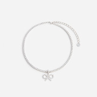 Details & Fit A dangling bow charm is the cherry on top of this glittering crystal tennis necklace. Work its adjustable length to pair effortlessly with button-downs and gowns alike.A dangling bow charm is the cherry on top of this glittering crystal tennis necklace. Work its adjustable length to pair effortlessly with button-downs and gowns alike. - Silver plated brass - Crystal embellishment - Clasp fastening - Length: 43cm Height: 2.5cm - Silver plated brass - Crystal embellishment - Clasp fastening - Length: 43cm Height: 2.5cm COMPOSITION Brass, Zirconia Brass, Zirconia