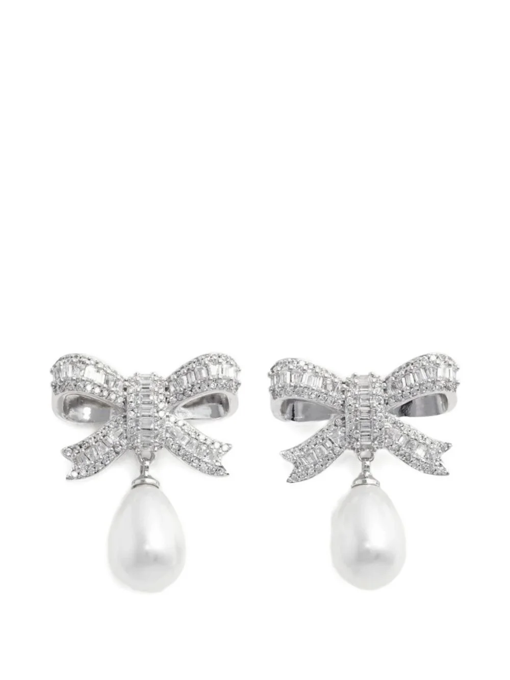 crystal-embellished bow earrings Highlights - Silver-tone - Faux-pearl embellishment - Crystal embellishment - Post-back fastening - Bow detail - Normal everyday use and external agents may reduce the lustre of gemstones and gold surfaces. to maintain, use specific, non-abrasive products specially meant for cleaning jewellery. - These earrings come as a pair. Imported