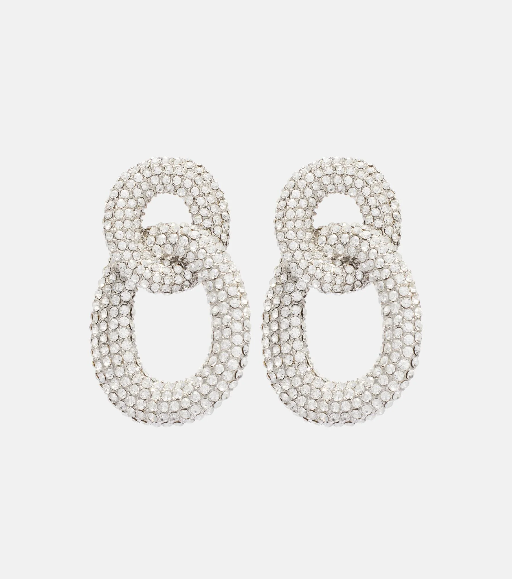 With a mission to celebrate women in every design, Self-Portrait has grown a strong cult following behind its classically feminine aesthetic. These drop earrings are adorned with sparkling crystals. Product Details - Material: zinc, crystals - Made in China - Item color: silver - Closure: post-back fastening - Includes: dust bag, box - Item number: P01098817 Size & Fit - Length 4,5cm-2" - Max. width 3cm-1"