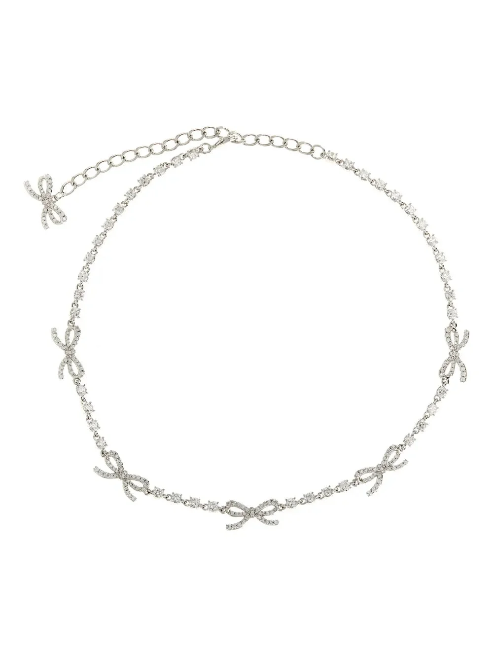 silver crystal embellishment bow detail lobster claw fastening - Color: SILVER - Made in: Hong Kong - Designer Style ID: RS26-611N-SL SILVE Composition and care Copper: 100.0%, Glass: 100.0%