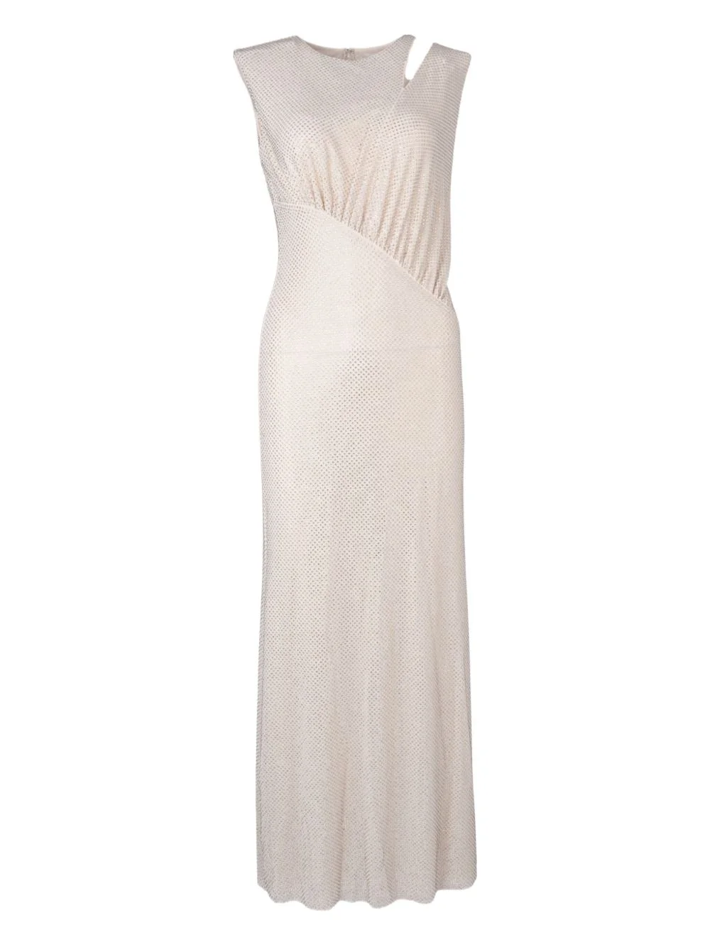 cut-out midi dress Highlights - Champagne - Rhinestone embellishment - Cut-out detail - Sleeveless - Draped detail - Round neck Imported Composition Outer: Polyester 93%, Elastane 7% Lining: Polyester 93%, Spandex/Elastane 7% Washing instructions Read Manufacturer Guidelines