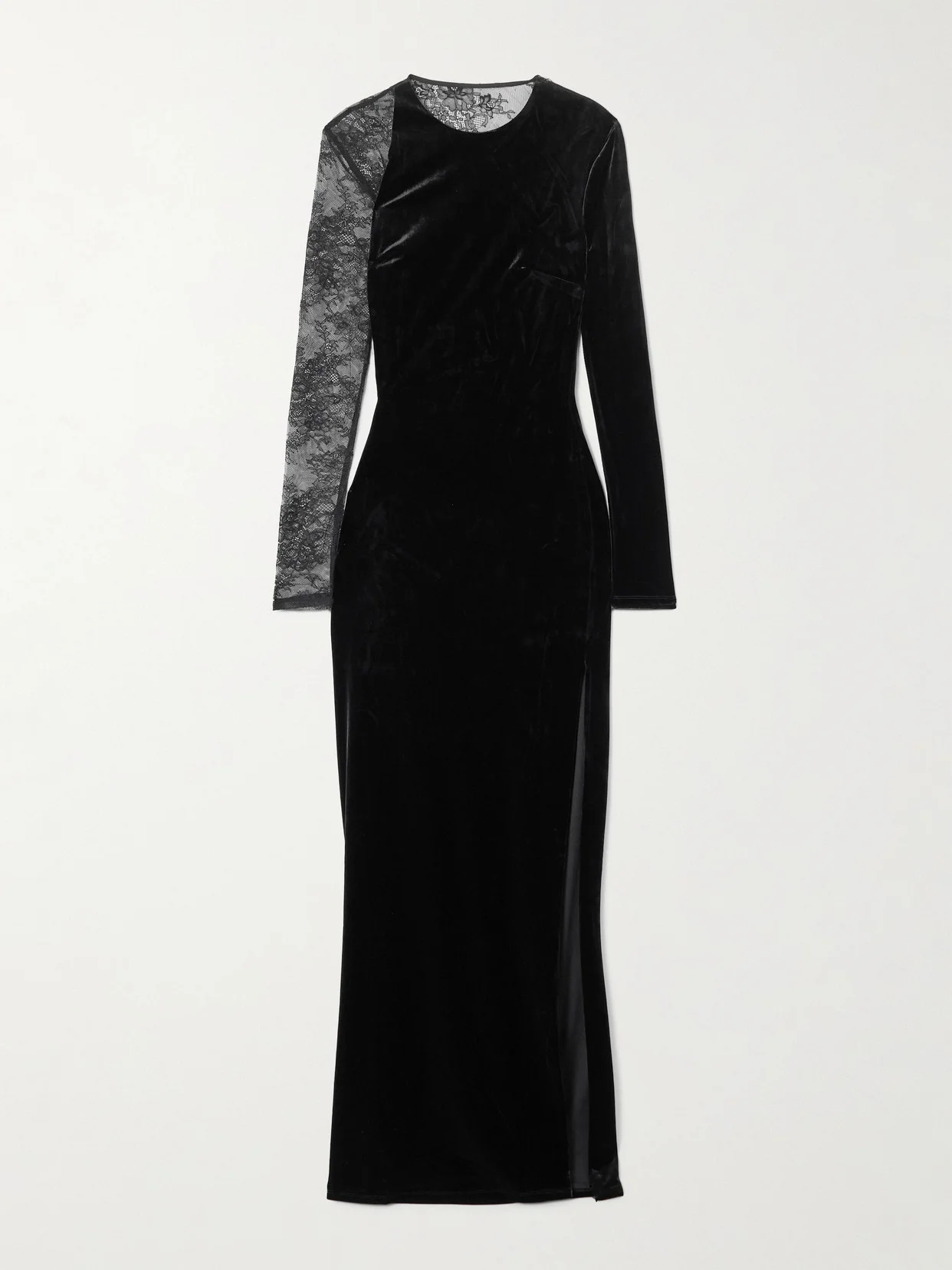 Lace-paneled Velvet Maxi Dress