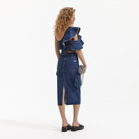 Denim Cargo Midi Skirt