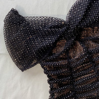 Get the room starry eyed in this irresistible off shoulder number, cut from diamanté fishnet fabric for a photo-ready finish. An off shoulder neckline shows off your décolletage, while ruching through the bodice ensures a sculpted silhouette. The ultimate going out top, style it with high-waisted jeans for a night out with the girls. Check the Size Guide to find your perfect fit. COMPOSITION Main Fabric: 96% Polyester 4% Elastane Lining 1: 100% Polyamide Linnig 2: 88% Polyester 12% Elastane