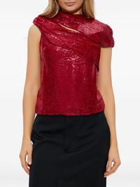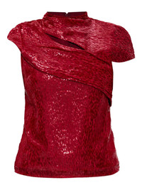draped lurex blouse Highlights - Red - Lurex threading - Round neck - Draped detailing - Single short sleeve - Rear zip fastening - All-over leopard print Imported Composition Outer: Polyamide 69%, Silk 31% Washing instructions Read Manufacturer Guidelines