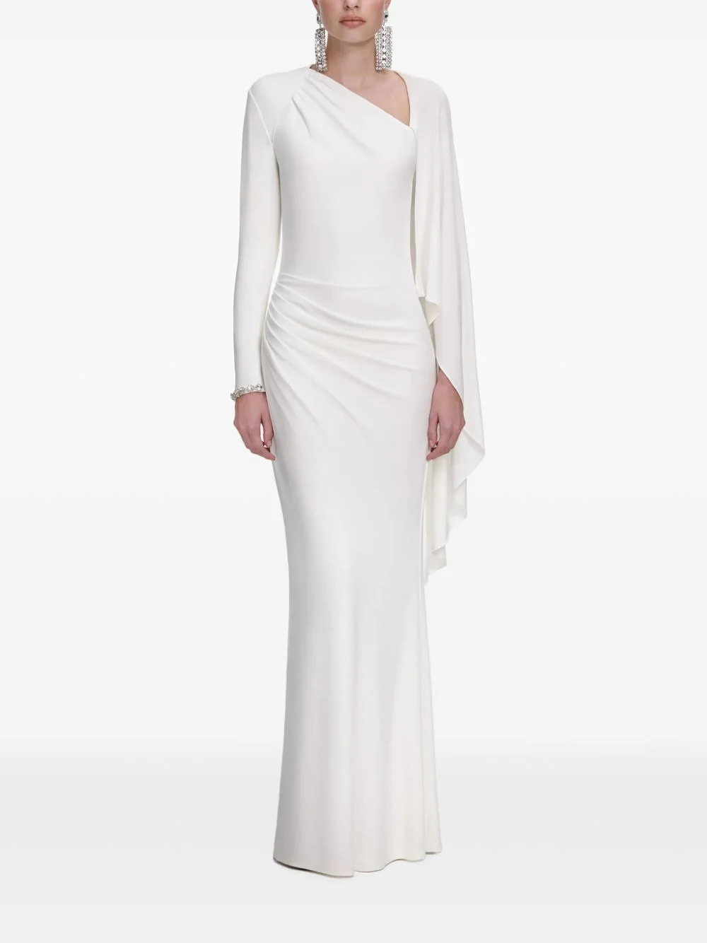 draped maxi dress Highlights - White - Asymmetric neck - Draped detailing - Long sleeve - Cuffs embellishment Imported Composition Viscose 93%, Elastane 7% Washing instructions Read Manufacturer Guidelines