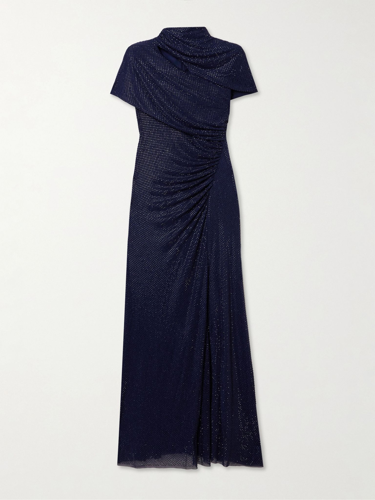 Crystal-embellished cutout draped stretch-jersey midi dress Navy