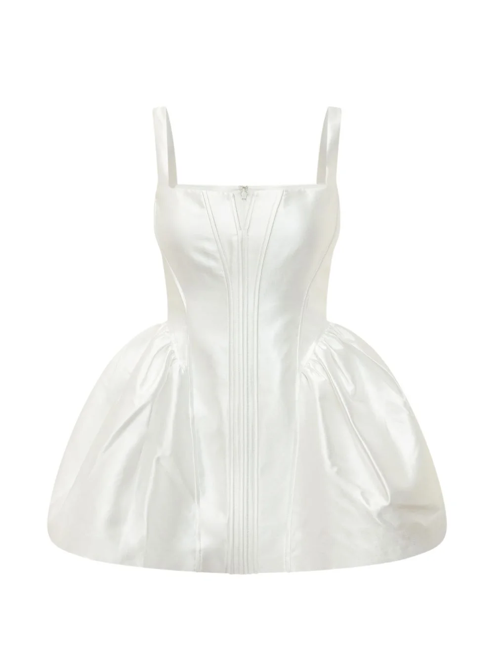 flared mini dress Highlights - White - Square neck - Zip fastening - Flared skirt - Sleeveless - Gathered detail Imported Composition Polyester 100% Washing instructions Read Manufacturer Guidelines