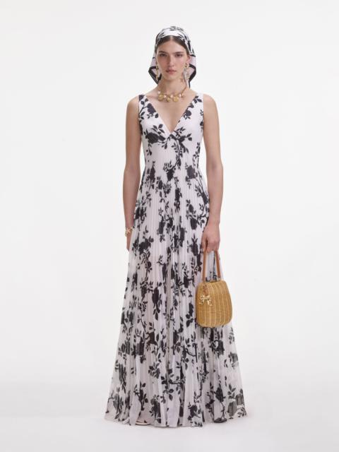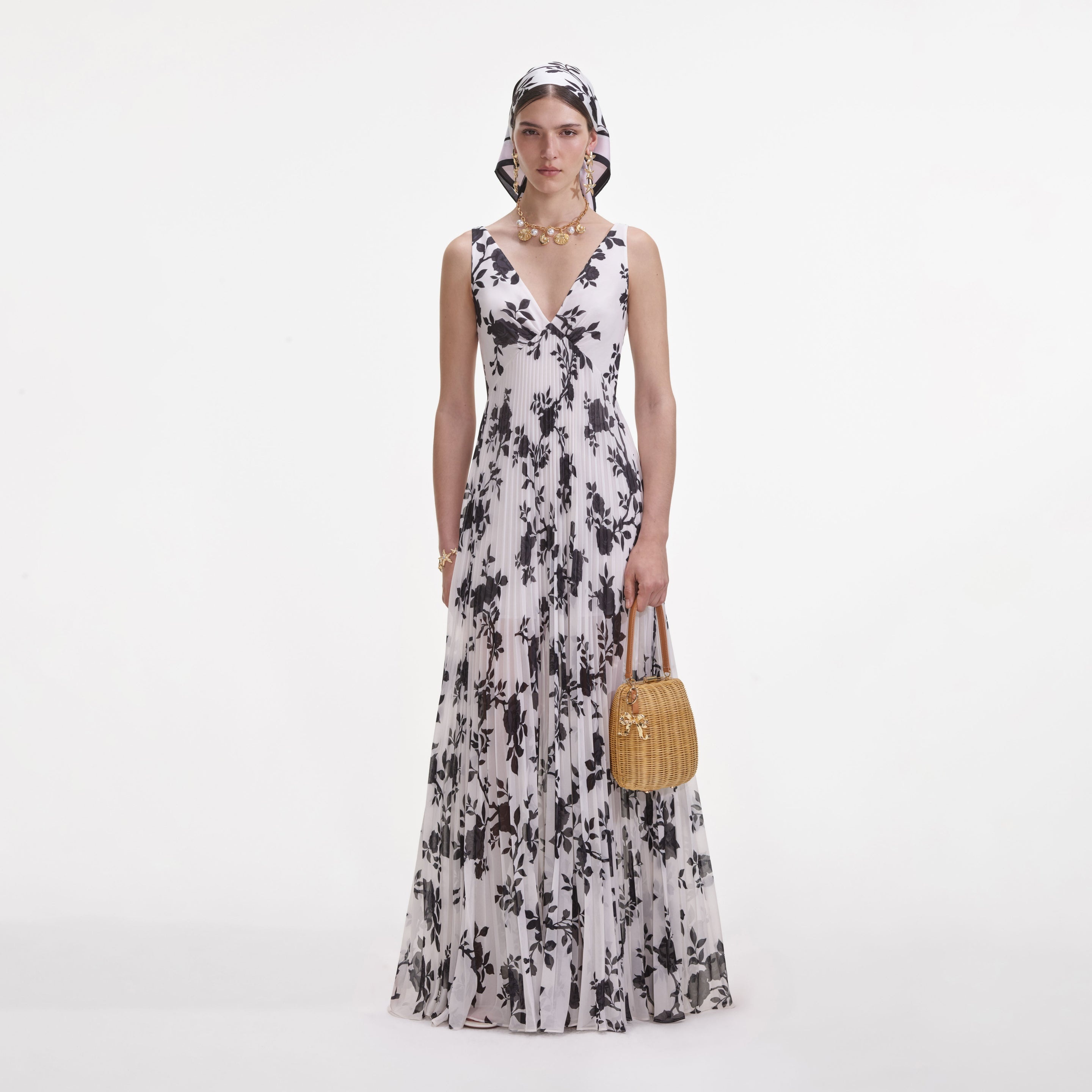 Details & Fit Floral print chiffon gives this maxi dress a dose of summer-ready energy. Pleat detailing throughout and a flared hem skirt brings elegant motion – style with sandals for the next garden party. - Fitted style, take one size up if between sizes - This style has minimal stretch - Zip closure at side - Lined bodice and mini skirt lining - Gathering detail under bust - Model is 5ft10/178cm and wears a size UK 6 COMPOSITION Main Fabric: 100% Polyester Lining: 100% Polyester
