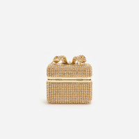 Details & Fit A glittering statement to have and hold, this gold crystal vanity adds extra opulence to every look. The piece de resistance? A glittering crystal bow, embellished with sparkling droplets. - Gold chainmail exterior - Clasp fastening - Crystal bow motif Composition 100% Polyester Lining 100% Polyester