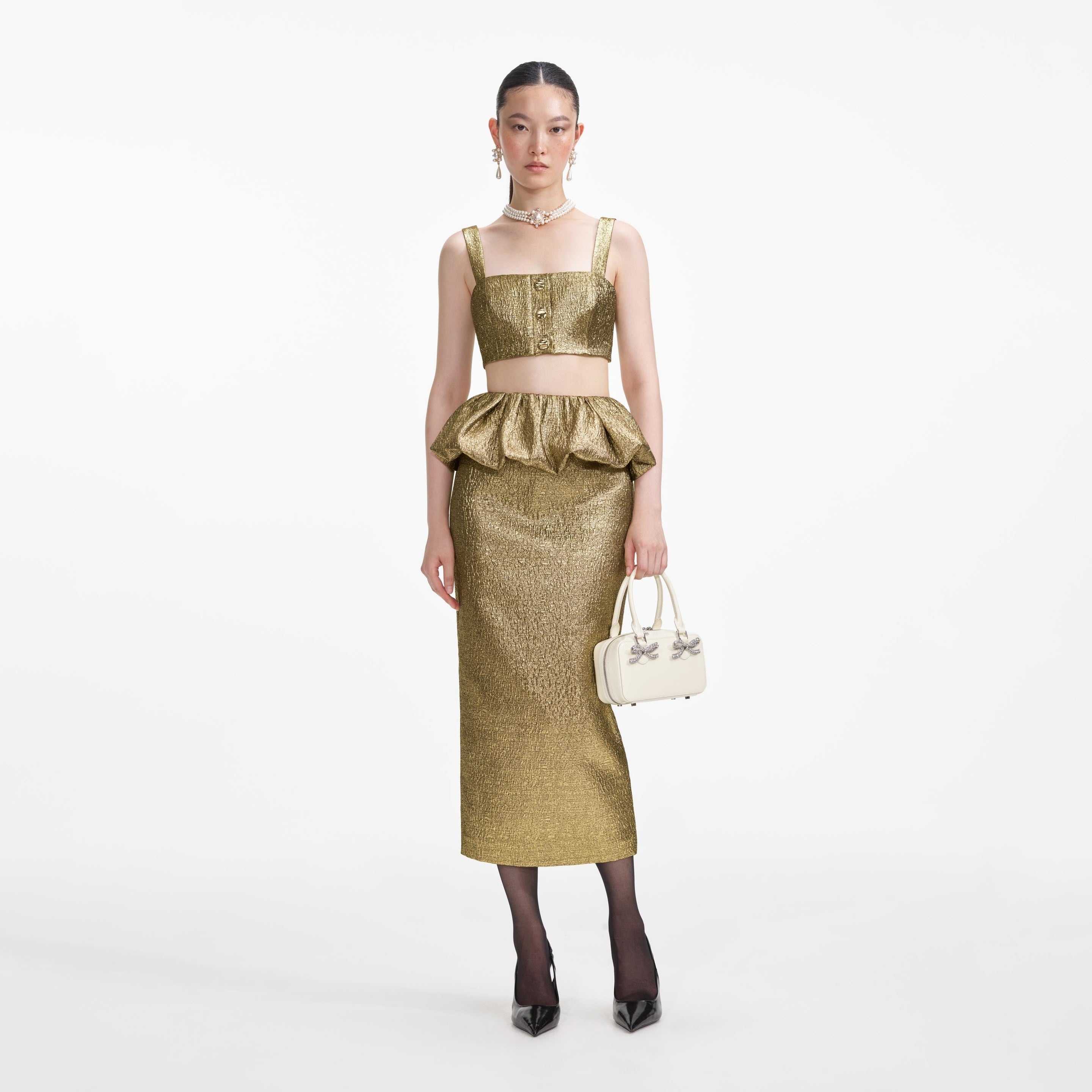 Gold Metallic Jacquard Crop Top
