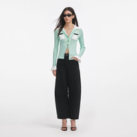 Details & Fit A breath of fresh air, this green ribbed knit cardigan has a flattering contrast collar and gold button detailing. Flared sleeves add elegant detail – wear with jeans and leather minis alike.A breath of fresh air, this green ribbed knit cardigan has a flattering contrast collar and gold button detailing. Flared sleeves add elegant detail – wear with jeans and leather minis alike. - True to size - Fabric has stretch - Button closure down front - Unlined style - Contrast detailing - Model is 5ft10/178cm and wears a size S - True to size - Fabric has stretch - Button closure down front - Unlined style - Contrast detailing - Model is 5ft10/178cm and wears a size S COMPOSITION Main: 67% Viscose 27% Cotton 6% Polyamide Collar: 69% Viscose 20% Polyester 10% Polyamide 1% Elastane Main: 67% Viscose 27% Cotton 6% Polyamide Collar: 69% Viscose 20% Polyester 10% Polyamide 1% Elastane