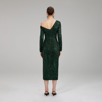 Green Stretch Sequin Midi Dress