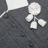 Details & Fit A new take on prep, this grey knit dress boasts a contrast collar and cuffs, with a crochet flower motif for added flair. Pair its flared mini hem with smart flats for desk to dinner days. A new take on prep, this grey knit dress boasts a contrast collar and cuffs, with a crochet flower motif for added flair. Pair its flared mini hem with smart flats for desk to dinner days. - True to size - Fabric has stretch - Button closure down front - Removable flower brooch - Removable shoulder pads - Model is 5ft10/178cm and wears a size S - True to size - Fabric has stretch - Button closure down front - Removable flower brooch - Removable shoulder pads - Model is 5ft10/178cm and wears a size S COMPOSITION Main: 47% Cotton 45% Wool 5% Polyamide 2% Cashmere 1% Elastane Collar: 70% Viscose 20% Polyester 9% Polyamide 1% Elastane (Exclusive Of Trimmings) Main: 47% Cotton 45% Wool 5% Polyamide 2% Cashmere 1% Elastane Collar: 70% Viscose 20% Polyester 9% Polyamide 1% Elastane (Exclusive Of Trimmings)