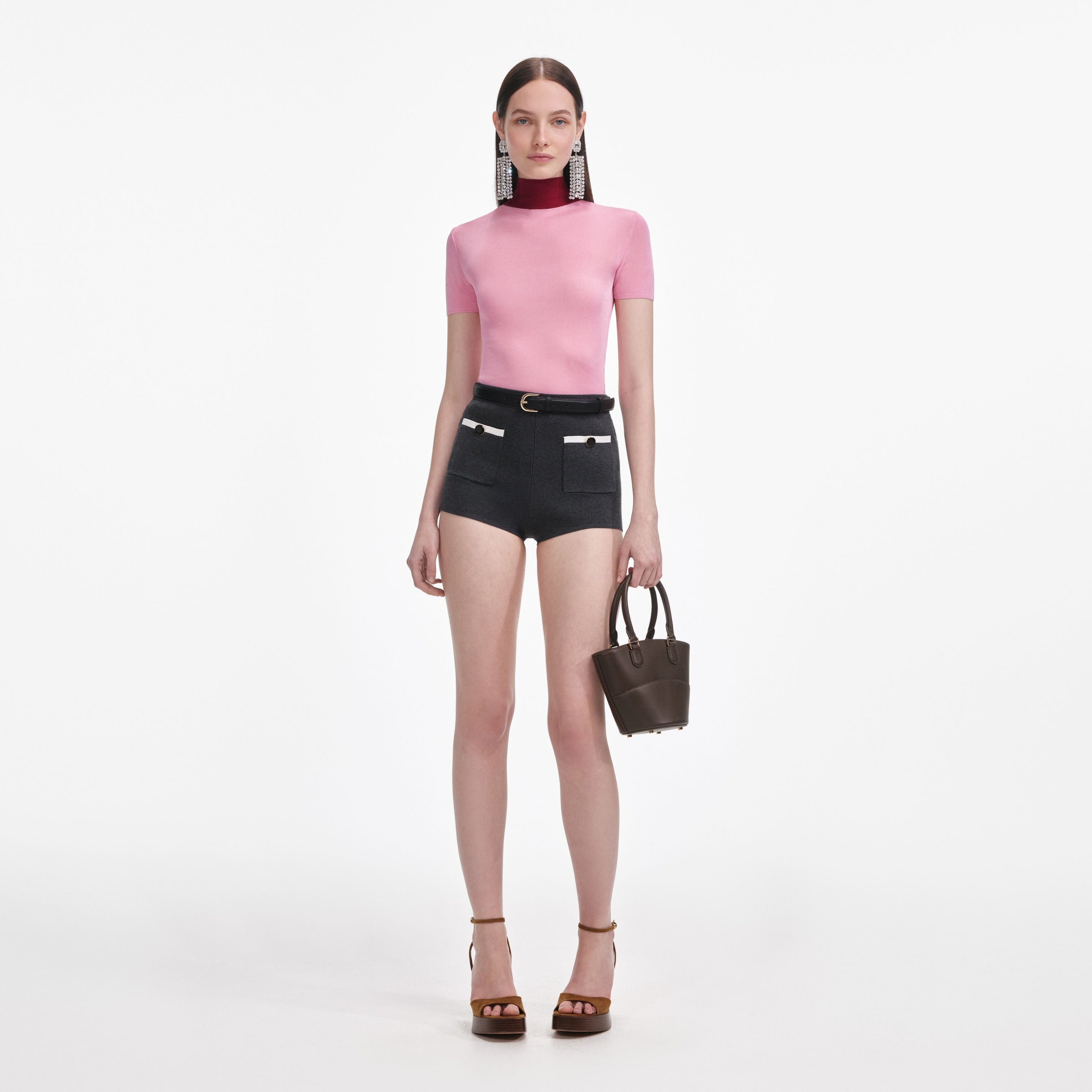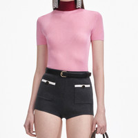 Details & Fit Comfort comes with a side of seduction in these grey viscose knit micro shorts. Decorated with contrast trims and black button detailing – style with a t-shirt and platforms for added drama.Comfort comes with a side of seduction in these grey viscose knit micro shorts. Decorated with contrast trims and black button detailing – style with a t-shirt and platforms for added drama. - True to size - Fabric has stretch - Button closure down front - Relaxed fit - Functional pockets - Model is 5ft10/178cm and wears a size S - True to size - Fabric has stretch - Button closure down front - Relaxed fit - Functional pockets - Model is 5ft10/178cm and wears a size S COMPOSITION Main: 67% Viscose 33% Polyester Main: 67% Viscose 33% Polyester