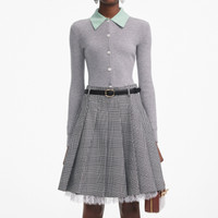 Details & Fit Channel preppy chic in this grey merino wool cardigan, adorned with a pop of colour from its contrast collar detailing. Style with a pleated mini and brogues for lunches and gallery visits alike.Channel preppy chic in this grey merino wool cardigan, adorned with a pop of colour from its contrast collar detailing. Style with a pleated mini and brogues for lunches and gallery visits alike. - True to size - Relaxed fit - Zip closure at back - Embellishment at neckline - Feather cuffs - Model is 5ft10/178cm and wears a size S - True to size - Relaxed fit - Zip closure at back - Embellishment at neckline - Feather cuffs - Model is 5ft10/178cm and wears a size S COMPOSITION Main:100% Wool Main:100% Wool