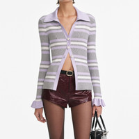 Details & Fit Channel preppy chic in this striped rib knit cardigan with its flattering contrast collar and flared sleeves. Wear it with tailored trousers for the office and pair with minis for date night.Channel preppy chic in this striped rib knit cardigan with its flattering contrast collar and flared sleeves. Wear it with tailored trousers for the office and pair with minis for date night. - True to size - Fabric has stretch - Diamante button opening down front - Flared sleeves - Model is 5ft10/178cm and wears a size S - Check the Size Guide to find your perfect fit - True to size - Fabric has stretch - Diamante button opening down front - Flared sleeves - Model is 5ft10/178cm and wears a size S - Check the Size Guide to find your perfect fit COMPOSITION Main: 53% Viscose 47% Polyester Collar: 69% Viscose 20% Polyester 10% Polyamide 1% Elastane Main: 53% Viscose 47% Polyester Collar: 69% Viscose 20% Polyester 10% Polyamide 1% Elastane