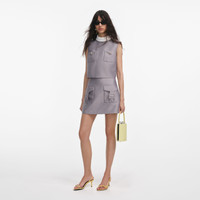 Details & Fit We love a co-ord, and this grey taffeta mini skirt — with its fitted form and buckle detailing — is one half of an epic date night look. Style with a pair of our statement earrings for full impact.We love a co-ord, and this grey taffeta mini skirt — with its fitted form and buckle detailing — is one half of an epic date night look. Style with a pair of our statement earrings for full impact. - True to size - Relaxed fit - Zip closure at back - Fully lined - Matching skirt available - Model is 5ft10/178cm and wears a size UK 6 - True to size - Relaxed fit - Zip closure at back - Fully lined - Matching skirt available - Model is 5ft10/178cm and wears a size UK 6 COMPOSITION 100% Polyester 100% Polyester