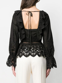 lace embroidered blouse Black cotton blend lace embroidered blouse from Self-Portrait featuring a square neck, long sleeves, a lace detail, an embroidered design and a fitted waist. Imported Composition Lining: Polyester 100% Outer: Cotton 57%, Polyester 43% SIZE & FIT Model measurements Height 5 ft 10 in(1.77 m) Bust/Chest 31.88 in(81 cm) Hips 34.64 in(88 cm) Waist 23.62 in(60 cm) Washing instructions Dry Clean Only