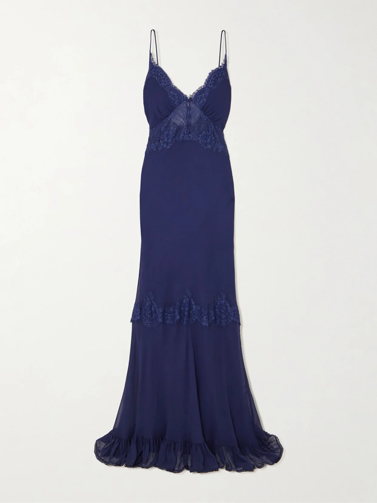 Lace-trimmed Georgette Maxi Dress