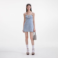 Light Blue Denim Pearl Mini Dress