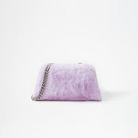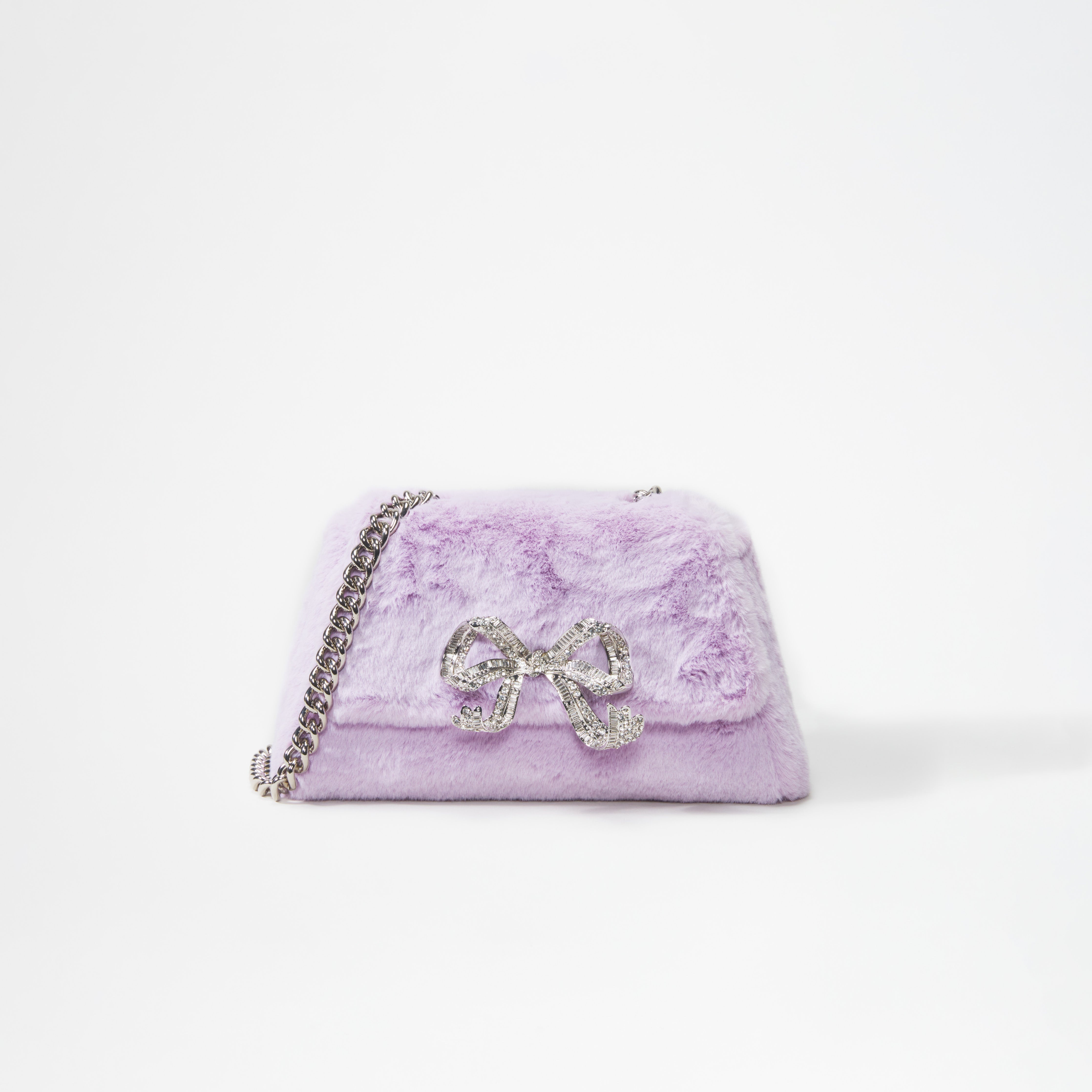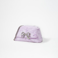 Part bag, part fluffy charm, this lilac mini shoulder bag adds a playful touch to any outfit. Covered with cosy shearling that's irresistible to the touch, our signature 3D bow comes embellished in shining diamanté. Designed to fit all the essentials, a classic chain strap allows it to be worn on the shoulder – perfect for life on the go. COMPOSITION Outer: 100% Polyester Lining: 100% Synthetic Leather Bow: Zinc Alloy