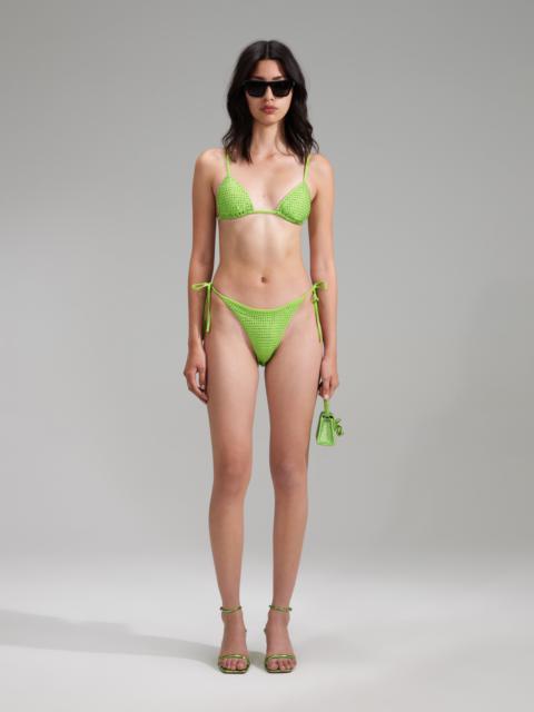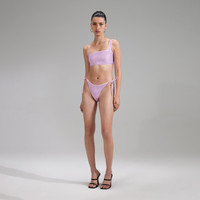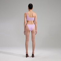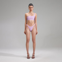 Channel your inner 90s style icon with these lilac briefs, which are cut from rhinestone studded swim fabric for disco-worthy shine. They have a flattering brazilian fit to flatter your form, and are framed by waist ties for minimal tan lines. Pair them with our matching bikini top and oversized sunglasses for a day in the sun. Check the Size Guide to find your perfect fit. COMPOSITION Main Fabric: 80% Polyamide 20% Elastane Lining: 80% Polyamide 20% Elastane