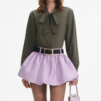 Details & Fit Seductively short, this taffeta skort charms with its lilac hue and flirty bubble hem. Style with a white t-shirt for an effortless party look or add a dazzling top and heels for dramatic impact. Seductively short, this taffeta skort charms with its lilac hue and flirty bubble hem. Style with a white t-shirt for an effortless party look or add a dazzling top and heels for dramatic impact. - Fitted style, take one size up if between sizes - This style has minimal stretch - Zip closure at back - Short lining - Removable belt - Model is 5ft10/178cm and wears a size UK 6 - Fitted style, take one size up if between sizes - This style has minimal stretch - Zip closure at back - Short lining - Removable belt - Model is 5ft10/178cm and wears a size UK 6 COMPOSITION Main Fabric/Lining: 100% Polyester Belt: Face: 100% Cow Leather Backing: Coating: Polyurethane Base Fabric: 100% Polyamide Main Fabric/Lining: 100% Polyester Belt: Face: 100% Cow Leather Backing: Coating: Polyurethane Base Fabric: 100% Polyamide