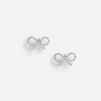 Details & Fit Small but mighty, these micro bow earrings are an elegant addition to every ensemble. Use them to dress up crisp button downs and evening gowns alike.Small but mighty, these micro bow earrings are an elegant addition to every ensemble. Use them to dress up crisp button downs and evening gowns alike. - Silver plated brass - Crystal embellishment - Stud backing - Length: 1.5cm Height: 0.9cm - Silver plated brass - Crystal embellishment - Stud backing - Length: 1.5cm Height: 0.9cm COMPOSITION Brass, Stainless Steel, Zirconia Brass, Stainless Steel, Zirconia