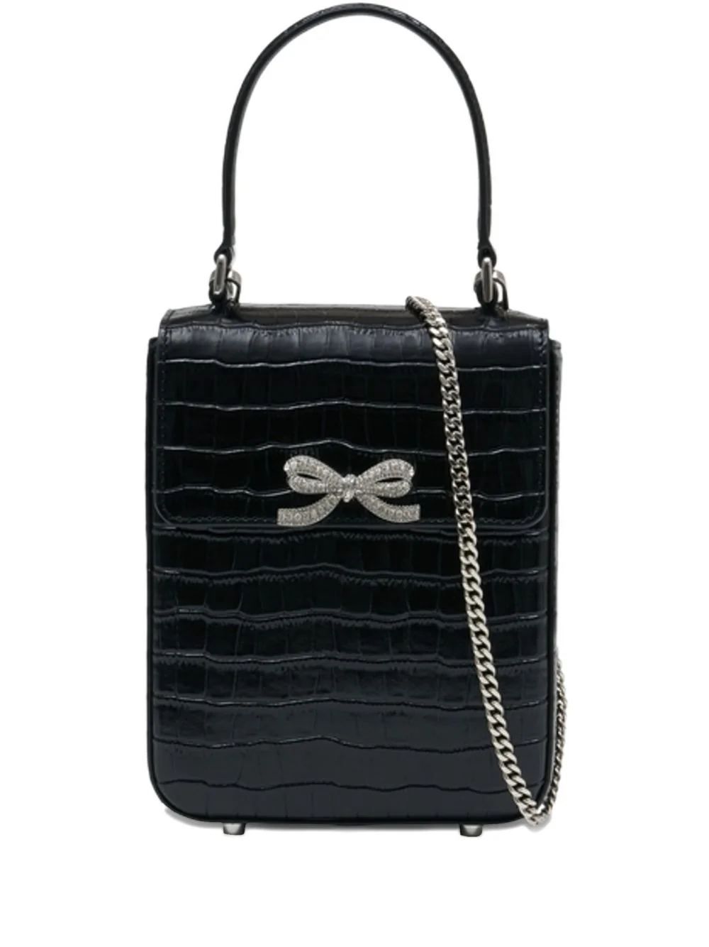 mini bow-embellishment shouolder bag Highlights - Black - Crocodile embossed leather - Bow embellishment - Chain strap - Silver-tone hardware Imported Composition Outer: Calf Leather 100% Lining: Polyurethane 100%