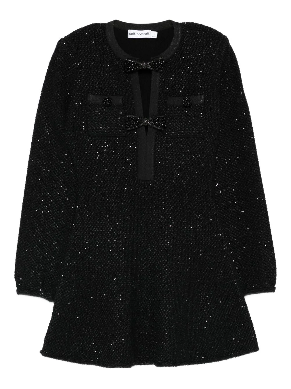 sequin bow mini dress Highlights - Black - Sequin embellishment - Bow detail - Knit construction - Long sleeves - Round neck Imported Composition Cotton 45%, Polyester 43%, Wool 12% SIZE & FIT Model measurements Height 5 ft 11 in(1.8 m) Bust/Chest 32.28 in(82 cm) Hips 35.82 in(91 cm) Waist 25.19 in(64 cm) Washing instructions Dry Clean Only