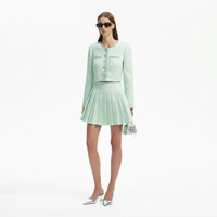 Details & Fit A fresh take on a preppy classic, this pleated skirt is cut from mint bouclé. It has a high-waisted, leg-lengthening silhouette — pair with kitten heels for a gossipy afternoon tea session. COMPOSITION Main Fabric : 82%Polyester 12%Cotton 4%Viscose 2%Metallised Fibre Lining : 100% Polyester (Trace Amount Of Polyamide, Modal, Lyocell, Acrylic, Ramie)
