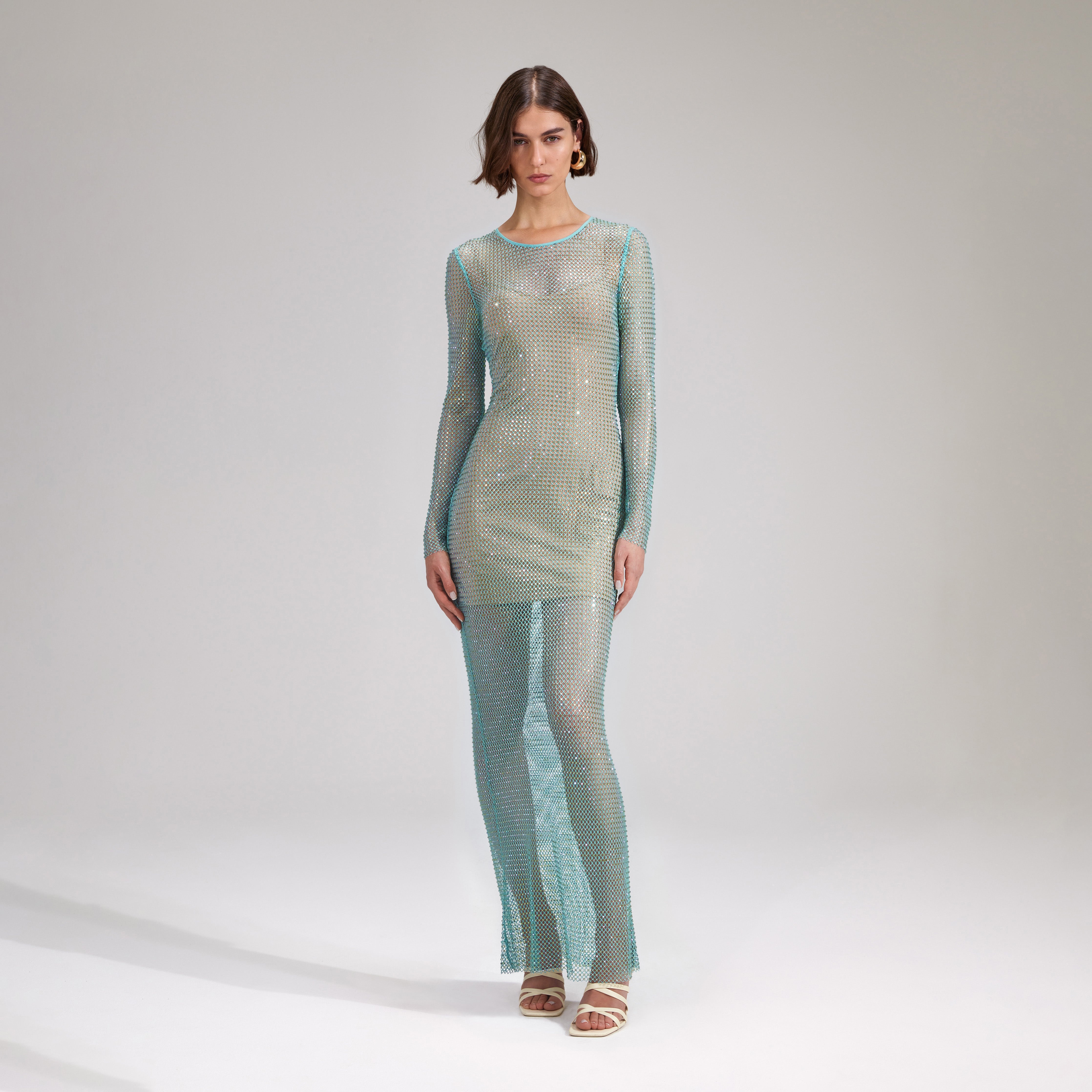 Mint Rhinestone Fishnet Maxi Dress