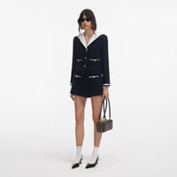 Details & Fit Channel nautical charm with this navy boucle jacket, which boasts an oversized sailor collar and gold button detailing. Pair its cropped length with high-waisted jeans and pleated minis alike.Channel nautical charm with this navy boucle jacket, which boasts an oversized sailor collar and gold button detailing. Pair its cropped length with high-waisted jeans and pleated minis alike. - Fitted style, take one size up if between sizes - This style has minimal stretch - Button closure down front - Contrast detailing - Matching skirt available - Model is 5ft10/178cm and wears a size UK 6 - Fitted style, take one size up if between sizes - This style has minimal stretch - Button closure down front - Contrast detailing - Matching skirt available - Model is 5ft10/178cm and wears a size UK 6 COMPOSITION 40% Polyester 26% Acrylic 24% Wool 10% Polyamide 40% Polyester 26% Acrylic 24% Wool 10% Polyamide