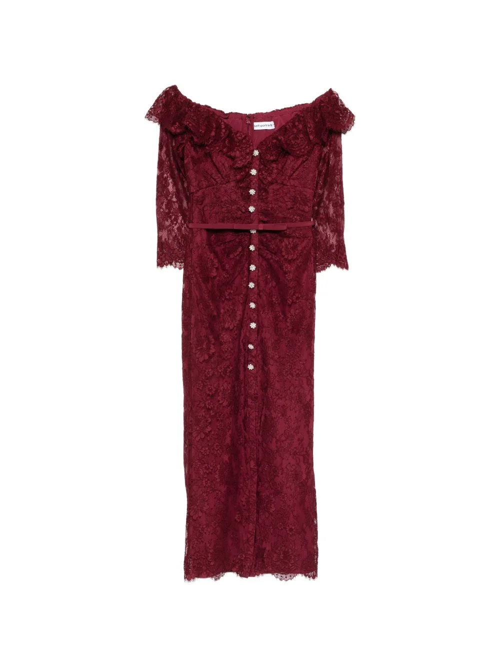 lace button dress Highlights - Burgundy - Lace design - Off-the-shoulder design - Detachable belt - Button fastening - Long sleeves Imported Composition Outer: Polyamide 63%, Viscose 37% Lining: Polyester 100% Washing instructions Dry Clean Only