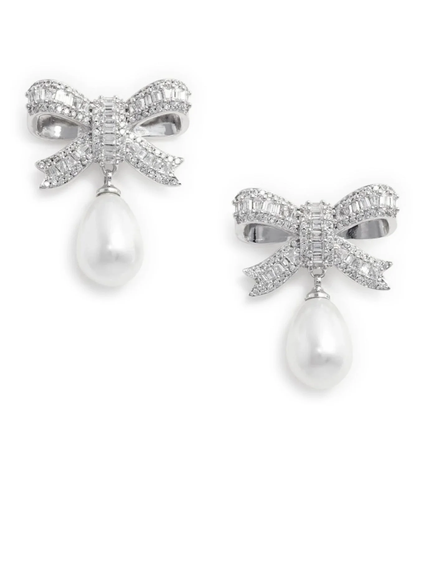 PEARL DROP EARRINGS WITH CRYSTAL BOW