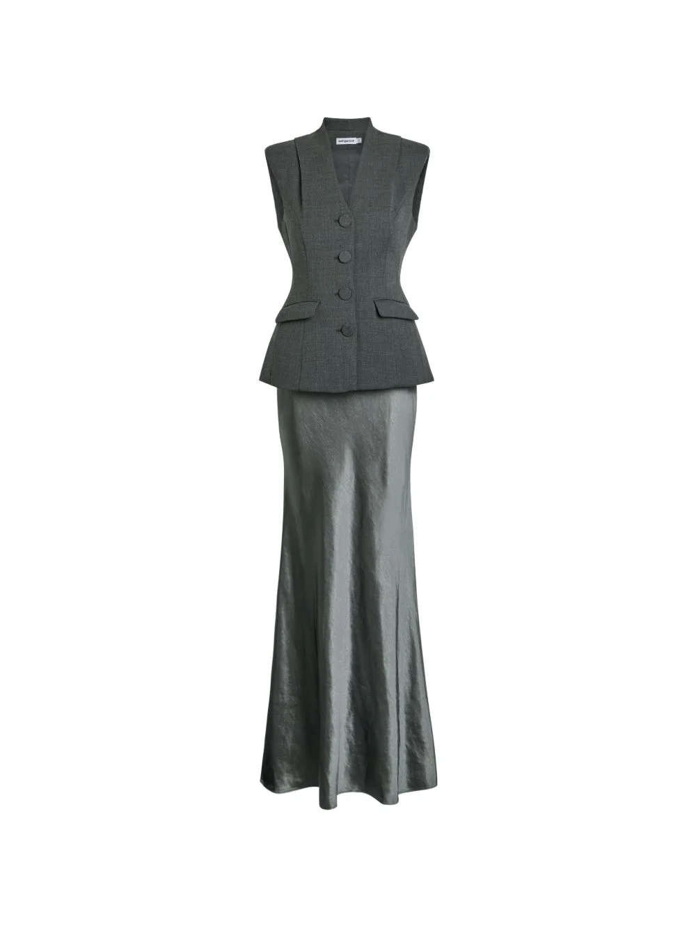 buttoned maxi dress Highlights - Grey - V-neck - Button fastening - Peplum waist - Flap pockets - Sleeveless Imported Composition Polyester 100% Washing instructions Read Manufacturer Guidelines