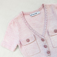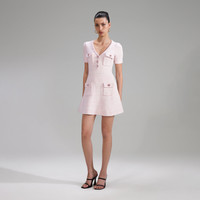 A traditional silhouette is imbued with modern flair with this mini dress, which is cut from pink cotton knit for a soft but sculpted fit. It has a qipao-inspired crossover neckline and fitted bodice, which along with pockets at the waist are adorned with eye-catching diamanté buttons. A flared mini skirt gives it a party-ready feel, while showing off your form. Style it with heels and statement earrings for a night on the town. Check the Size Guide to find your perfect fit. COMPOSITION Main: 100%Cotton Trim: 68%Cotton 30%Viscose 1%Polyamide 1%Elastane