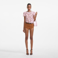 Details & Fit Unabashedly feminine, this pink lace top features pearl and diamante trims for extra glamour. Pair its relaxed fit with jeans for date night or style with a slinky skirt for a chic party look. - True to size - Relaxed fit - Zip closure at back - Unlined style - Embellished trims - Model is 5ft10/178cm and wears a size UK 6 COMPOSITION 63% Polyamide 27% Cotton 10% Viscose